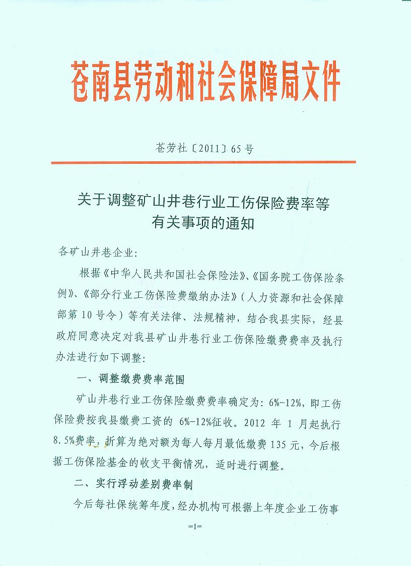 關(guān)于調(diào)整礦山井巷行業(yè)工傷保險(xiǎn)費(fèi)率等有關(guān)事項(xiàng)的通知