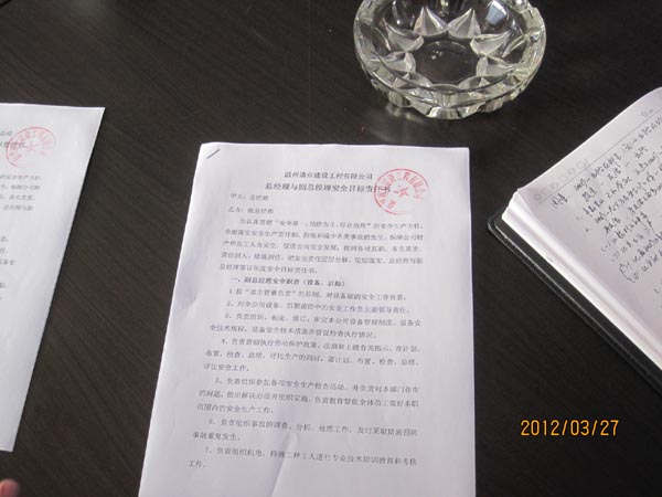 2012年3月27日,我公司在四樓會議室舉行2012年各級安全生產(chǎn)目標(biāo)管理責(zé)任書簽訂儀式。