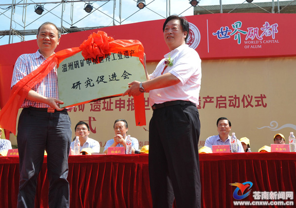 縣長董慶華在致辭時說,溫州礬礦遺址是浙江省文保單位中首個仍在生產(chǎn)的工業(yè)“活遺址”,也是礬礦采煉技術(shù)發(fā)展、工藝變遷“活的教科書”。600多年的開采歷史,見證了我國礦山企業(yè)發(fā)展的演變歷程,形成了獨(dú)具地域特色的人文景觀和工業(yè)文化,成為我省工業(yè)遺產(chǎn)的杰出代表,在全國礬礦工業(yè)史中占有重要地位。同時,以礬礦工人為代表的30萬蒼南礦山井巷人,以“軟錘號歌闖天下”的創(chuàng)業(yè)精神,帶著祖祖輩輩承襲的傳統(tǒng)技能,走出大山,走遍全國,走向世界,涌現(xiàn)出一大批“煤老板”、“礦老板”,“中國礦山井巷業(yè)之鄉(xiāng)”也由此花落蒼南,創(chuàng)造了蒼南的自豪與驕傲。