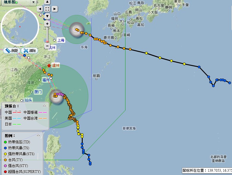 溫州市氣象臺08月02日07時發(fā)布的臺風(fēng)警報和天氣預(yù)報:今年第9號臺風(fēng)“蘇拉”,今天3時15分前后在臺灣省花蓮市登陸,登陸時中心附近******風(fēng)力有14級(42米/秒),中心最低氣壓為950百帕。今天05時中心位于溫州東南偏南方向約460公里左右的臺灣花蓮境內(nèi),即北緯23.9度,東經(jīng)121.5度,近中心******風(fēng)力13級(40米/秒),中心最低氣壓955百帕,七級風(fēng)圈半徑500公里,十級風(fēng)圈半徑120公里。預(yù)計未來朝西北方向移動,逐漸向浙閩沿??拷?*****可能于今天后半夜到明天下午在福建中北部到浙江中部一帶沿海登陸。